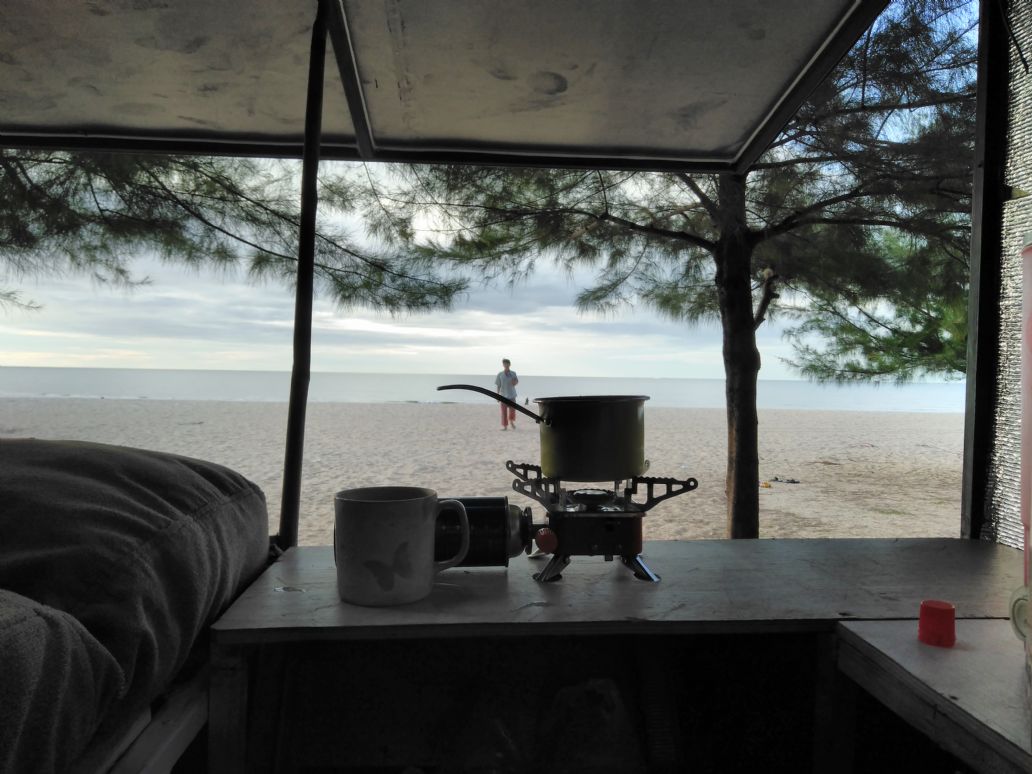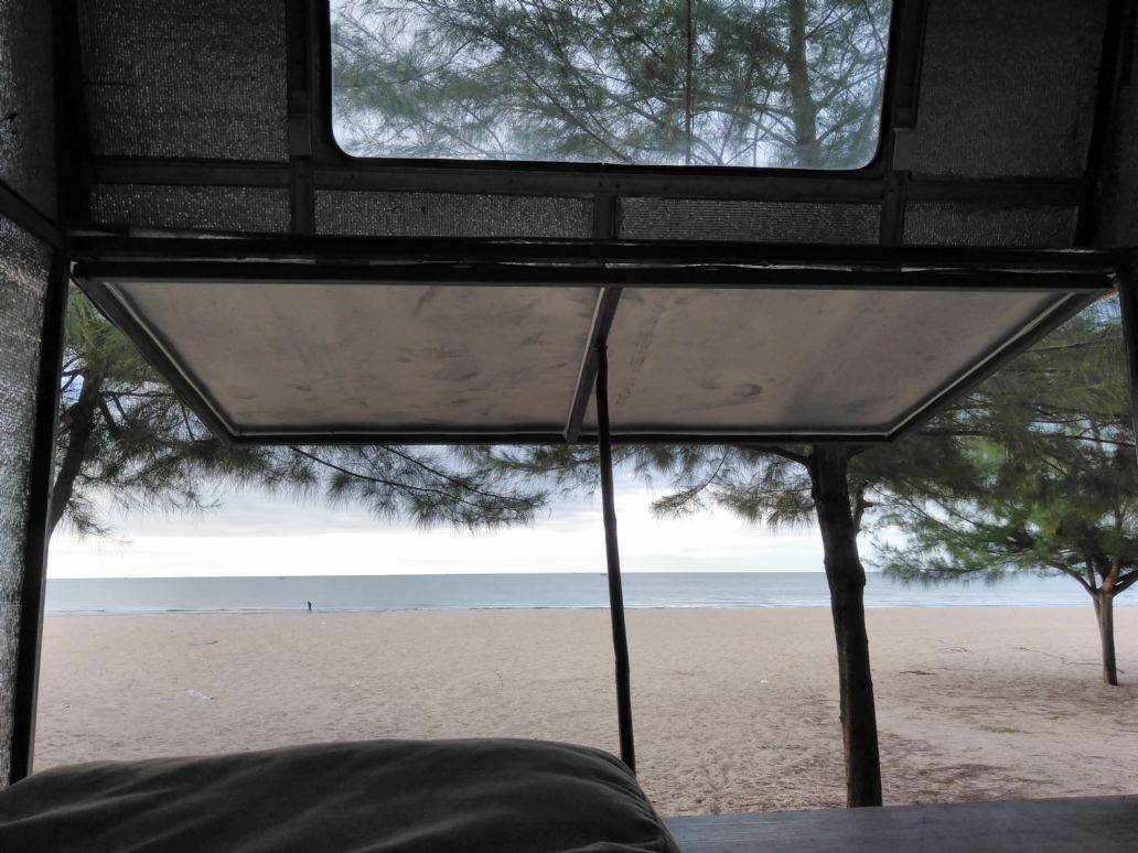 จอดชายหาดคู่กะบ้านลุงไก่เบย เช้ามาเปิดรับลม ชมบรรยากาศเต็มๆ