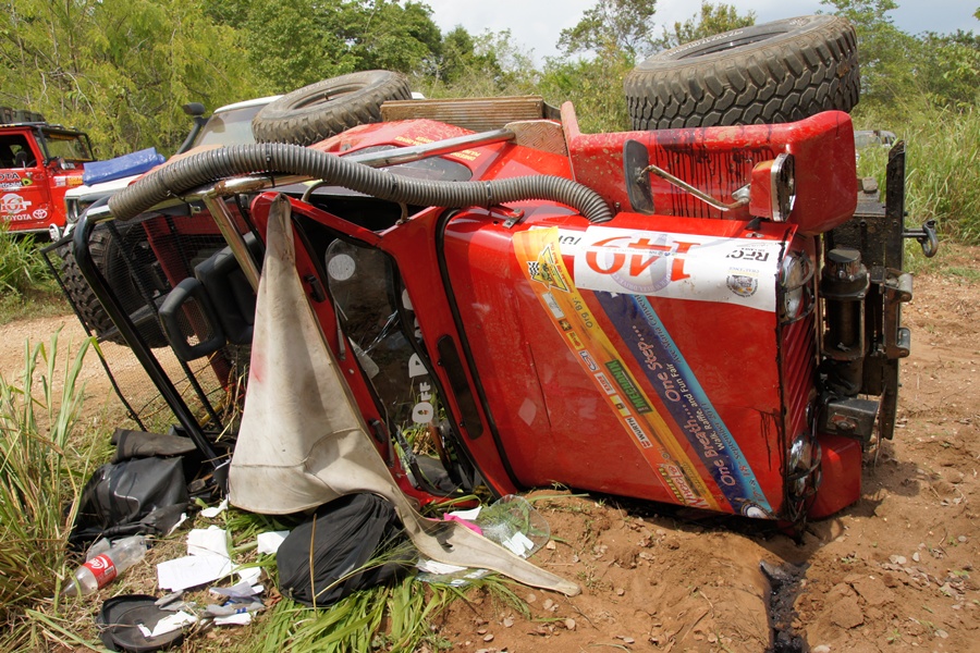หลังจากการแข่งขันจบลงในช่วงบ่ายๆมีการกลับไปรวมตัวตั้งแถวคาราวานรถยนต์ในบริเวณแคมป์ไซค์อ่างเก็บน้ำ เพื่อเดินทางต่อไปที่พักแรมแคมป์ไซค์บริเวณริมแม่น้ำคุมบุ๊กคาน(Kumbukkan)ซึ่งอยู่บริเวณเขตแดนกั้นระหว่างอุทยานแห่งชาติกับทุ่งไร่แตงโมกันชนก่อนถึงป่า ห่างจากแคมป์เก่าประมาณ 15 ก.ม. ปรากฎว่าผู้เข้าแข่งขันชาวศรีลังการถยนต์หมายเลข 149 ขับโดยผู้ช่วยคนขับชื่อ พัลนา ดีสซีลา(Pulna Thissera) ขณะขับรถยนต์กลับจากSSสุดท้ายเพื่อมาเข้าแถวคาราวาน เกิดอุบัติเหตุรถยนต์พลิกคว่ำบนถนนลูกรังหินลอย ได้รับบาดเจ็บหนักสาหัสสลบคาที่อาการปางตาย โชคดีที่ผู้จัดมีแพทย์ตามการแข่งขันเข้ามาในป่านี้ถึงสี่คน ได้รีบช่วยเหลือนักกีฬาแก้ไขช่วยชีวิตทันทีและรีบส่งตัวไปโรงพยาบาลจนฟื้นขึ้นมา แล้วทำการรักษาต่อจนรอดปลอดภัย !
