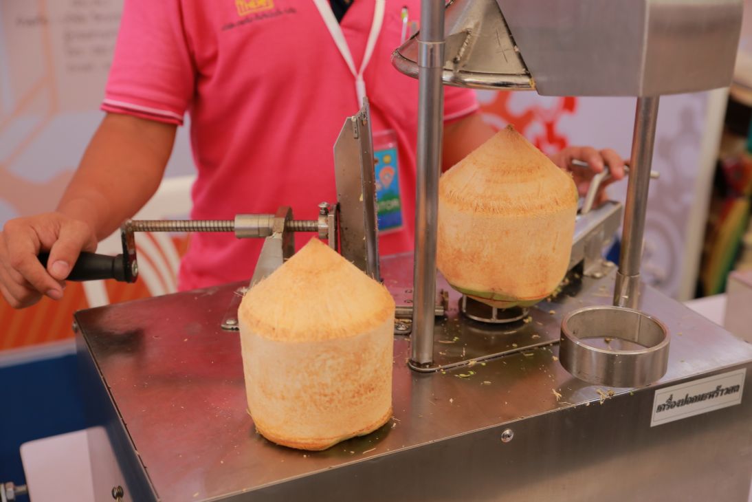 “เครื่องแกะทุเรียนภายใน 10 วินาที” นับเป็นหนึ่งไฮไลท์ของนวัตกรรมและเทคโนโลยีทางด้านการเกษตรสำหรับเอสเอ็มอี ใกล้ๆกัน เรายังพบกับนวัตกรรมทางการเกษตรอื่นๆ เช่น เครื่องปอกมะพร้าว เครื่องปาดเปลือกมะพร้าว เครื่องเจาะมะพร้าว เครื่องม้วนอัดไม้อ้อย ฯลฯ ที่สามารถนำไปใช้งานเพื่อเพิ่มประสิทธิภาพให้กับเกษตรกรหรือโรงงาน รวมทั้งผู้ที่ต้องการเริ่มต้นธุรกิจใหม่ เช่น อาชีพขายน้ำมะพร้าว ที่สามารถลงทุนซื้อเครื่องจักรตัวนี้ ไปตั้งไว้หน้าร้าน โดยใช้เพียงพื้นที่เล็กๆ ก็สามารถจำหน่ายน้ำมะพร้าวสดๆให้กับลูกค้าได้ทันที