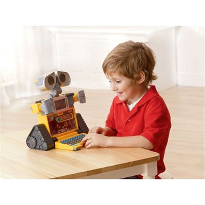 Learn and have fun as you join WALL-E and EVE on their adventures across the galaxy. The WALL-E Learning Laptop from VTech is based on the Disney Pixar film character and features a flip-down QWERTY keyboard, interactive hand controllers that turn 360 degrees to answer selected questions, plus WALL-E s winking eye that encourages interaction.