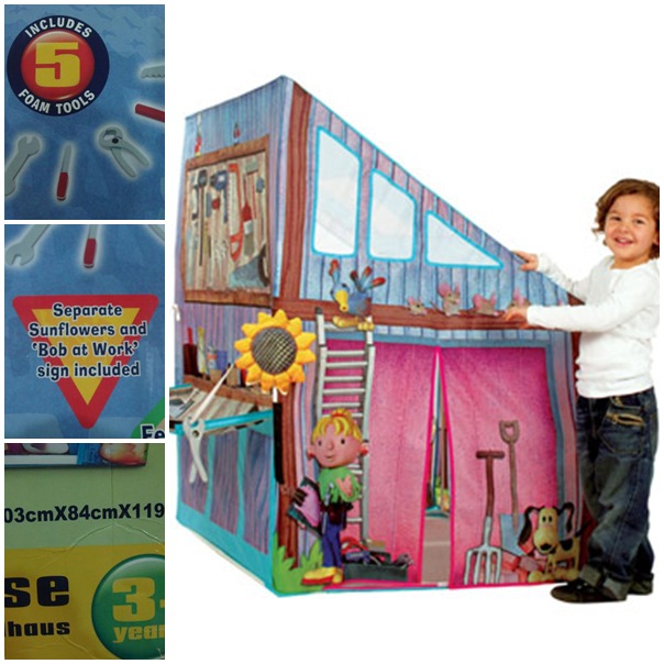 Hours of fun can be had with this great Bob the Builder playhouse! This play tent is packed full of features and is based on Bobs very own workshop. The colourful play house includes positional sunflowers from Sunflower Valley and a warning sign showing that Bob is at work! Drop down work bench shelves; useful storage pockets and set of five foam tools to complete the picture.