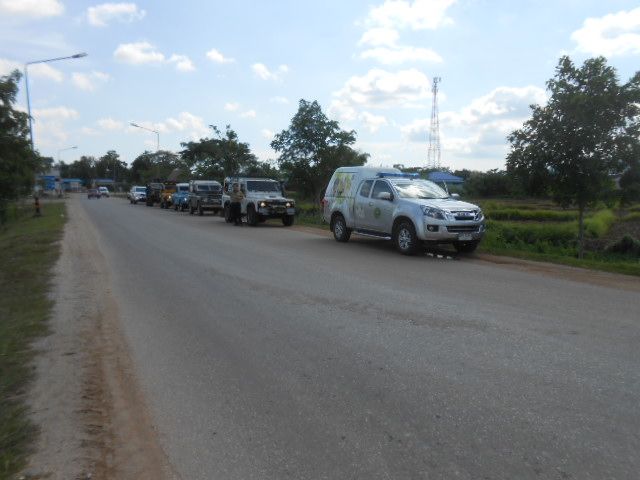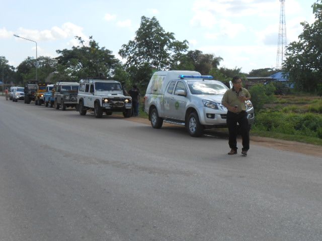 จี๊ปหนึ่งคันและรถของโรงบาลอีก 3 คัน บรรทุกยาและอุปกรณ์ทางการแพทย์เต็มทุกคัน พร้อมเจ้าหน้าที่ของโรงบาล