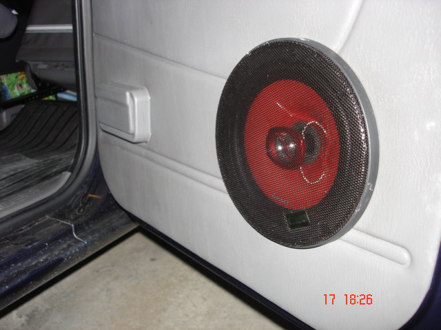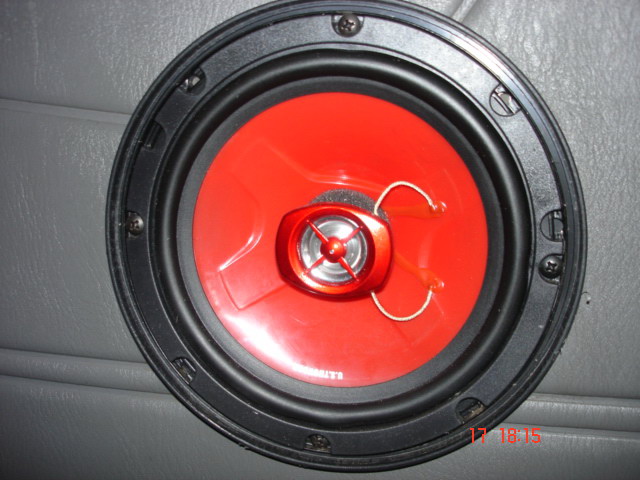 ลำโพงสี่ตัว คู่หน้า 6" ยี่ห้อ audio quart คู่หลัง 6" ยี่ห้อ u.s.thunder และ ทวีตเตอร์ สองตัว (คู่หน้าดูไม่ได้ติดฝาครอบประตู)