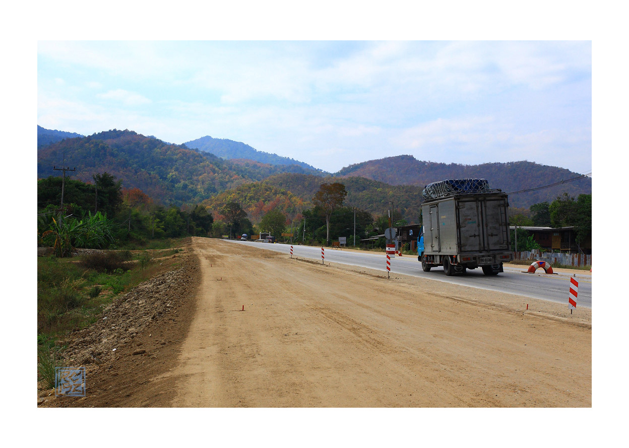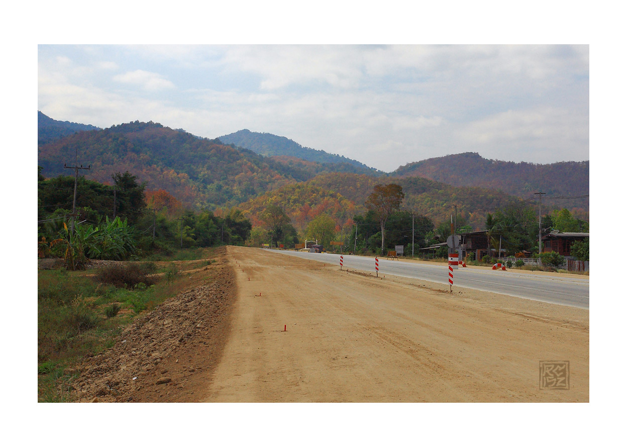 เส้นทางกำลังปรับปรุง....ด้านหน้าทิวเขาเต็มไปด้วยต้นไม้กำลังเปลี่ยนสี...เลยบันทึกมาฝาก