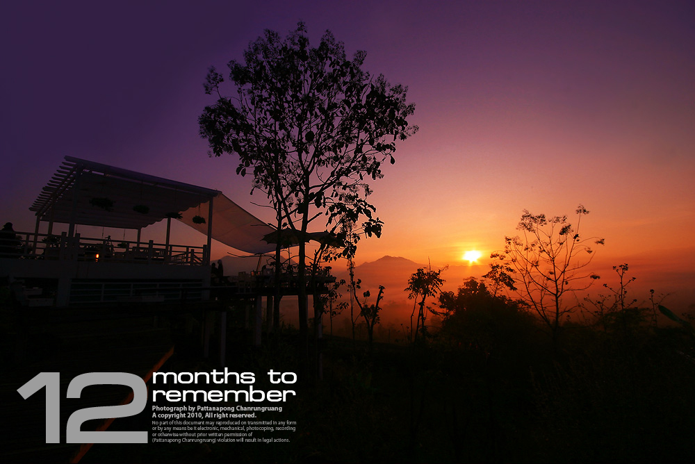 ภาพที่ 9 อันนี้เริ่มต้นปี 2011 มาอาทิตย์นึง ไม่รู้ละผมจะนับย้อนไปเป็นปีที่แล้วละกัน ก็อยากเอาลงนี่นา ภาพจากภูทอก เชียงคาน ขึ้นไปรอมันมา 3 เช้าไม่มีหมอกสักนิดส์...... เป็นสถานที่ๆไม่เป็นอย่างที่หวัง แต่พอมาถึงตอนนี้ก็รู้สึกดีที่ครั้งนึงเราได้มีโอกาสไปมาแล้วเหมือนกัน ใครจะไปรู้วันนี้ไม่ไป โอกาสหน้าจะมีโอกาสได้ไปหรือเปล่า จากที่เคยคิดว่าจะไม่กลับไปอีกแล้ว กลายเป็นต้องกลับไปแก้มือแล้วละ แต่...ในวงเล็บ (ขอตอนที่คนเลิกฮิตแล้วนะครับ) ถึงเวลานั้นมันอาจจะไม่สวยแล้ว คนไม่อยากมาเที่ยว ทำจนมันโทรมแล้ว มันยิ่งท้าทาย ผมจะถ่ายมันมาให้สวยให้ได้ครับ แค่คราวนี้ยังถ่ายมาไม่เหมือนชาวบ้านเค้าเลย สงสัยจริงๆว่ามันคือเชียงคานหรือเปล่าหว่า 555