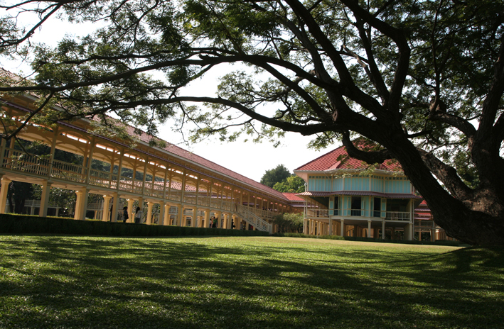 ร่มเงาของต้นไม้ใหญ่หน้าลานกว้างของพระราชนิเวศน์ฯ