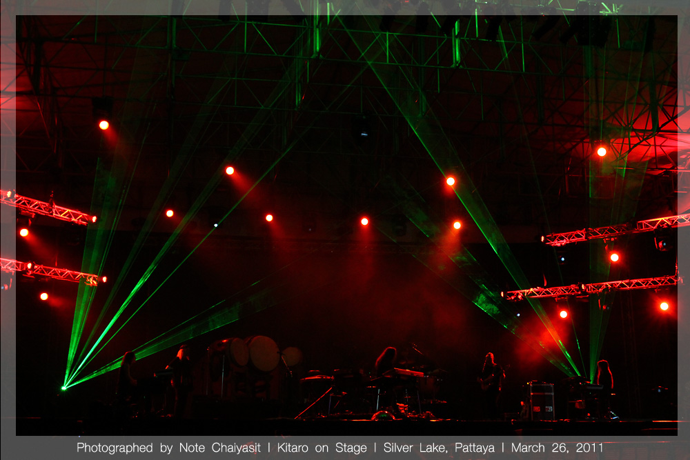 ดนตรีเริ่มตั้งแต่ หกโมงเย็น สองทุ่มคีทาโร่ยังไม่เล่นเลยค่ะ เล่นตอนสองทุ่มครึ่ง.. ฟองน้ำเล่นไปชั่วโมงนึง นักกีต้าร์ชั่วโมงนึง พอสองทุ่มครึ่งเล่นไปถึงห้าทุ่มกว่า