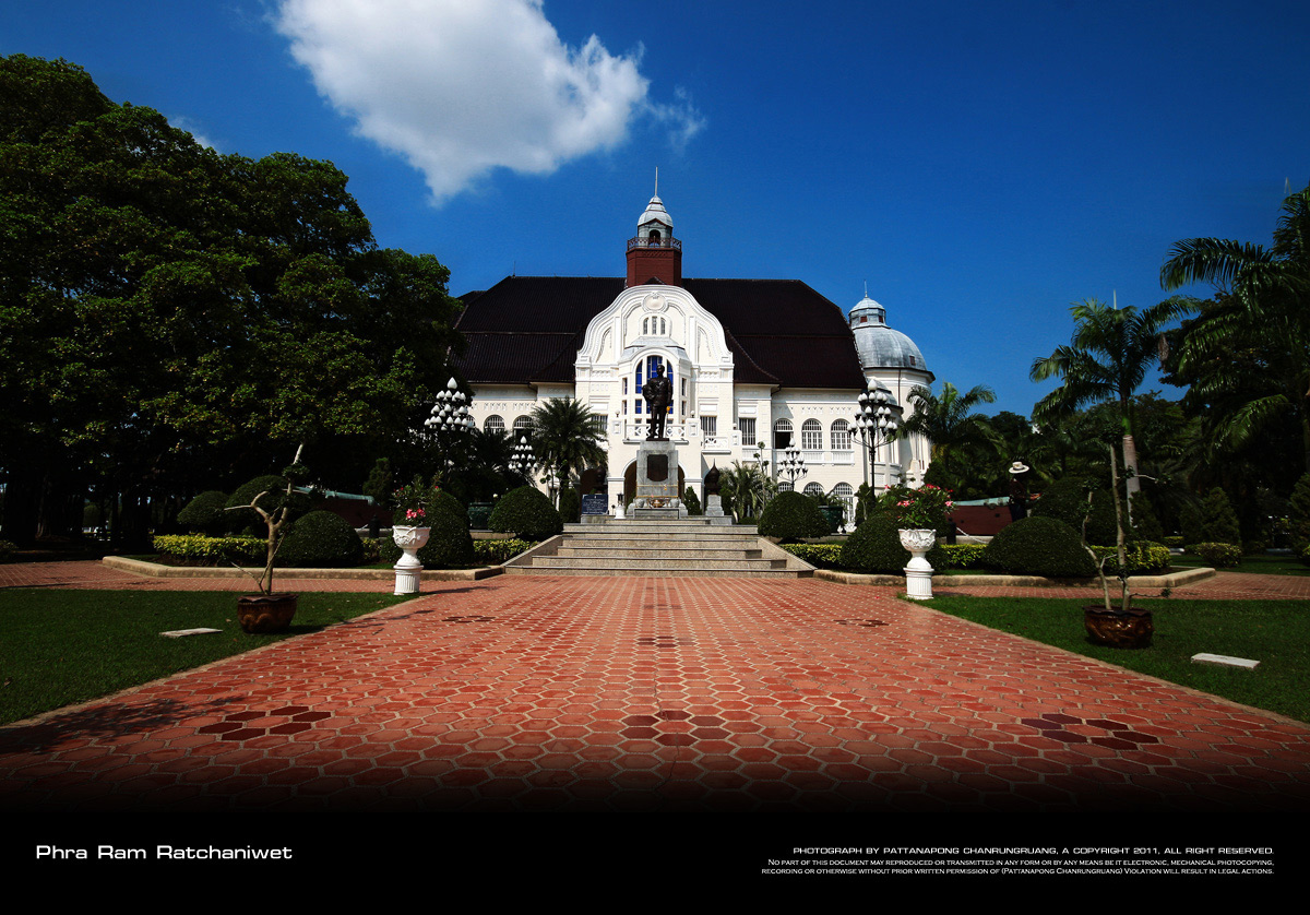 ประวัติโดยย่อ พระบาทสมเด็จพระจุลจอมเกล้าเจ้าอยู่หัว มีพระราชประสงค์ให้สร้างด้วยพระราชทรัพย์ส่วนพระองค์ เพื่อเป็นพระราชนิเวศน์สำหรับประทับแรมในฤดูฝน สร้างแบบสถาปัตยกรรมยุโรป เริ่มก่อสร้างในปี พ.ศ. 2452 แล้วเสร็จในปี พ.ศ. 2459 ในรัชสมัยพระบาทสมเด็จพระมงกุฎเกล้าเจ้าอยู่หัว พระราชทานนามว่า พระที่นั่งศรเพ็ชรปราสาท และทรงเปลี่ยนเป็นพระรามราชนิเวศน์ ปี พ.ศ. 2461 ใช้เป็นที่รับรองแขกเมือง
