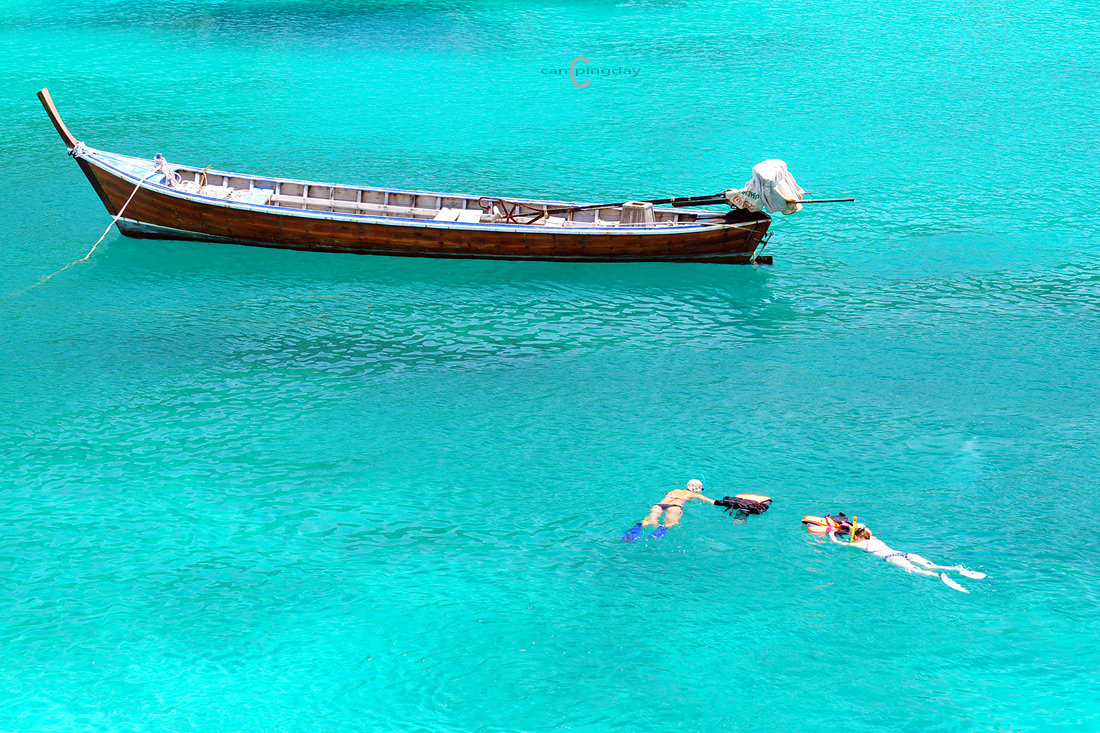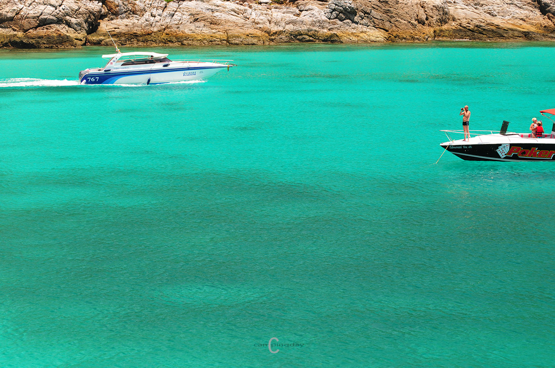 แต่โอ้โห กับน้ำที่นี้ ทำม่ายมันเป็นแบบนี้ จะใสไปถึงไหน ตะลึงอยู่พักนึง พอเรือเทียบโป๊ะ ก็ช่วยกันขนสัมภาระกัน
