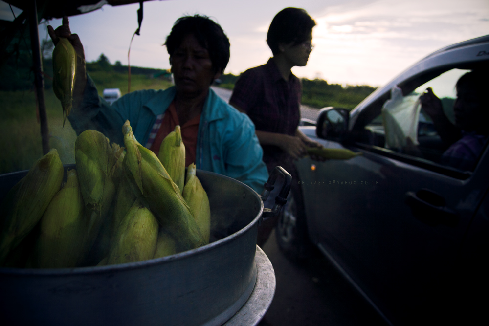 ขากลับแวะซื้อข้าวโพดต้มกินแ้ก้หิวระหว่างทาง...โฟกัสไม่ชัดแต่ชอบ....