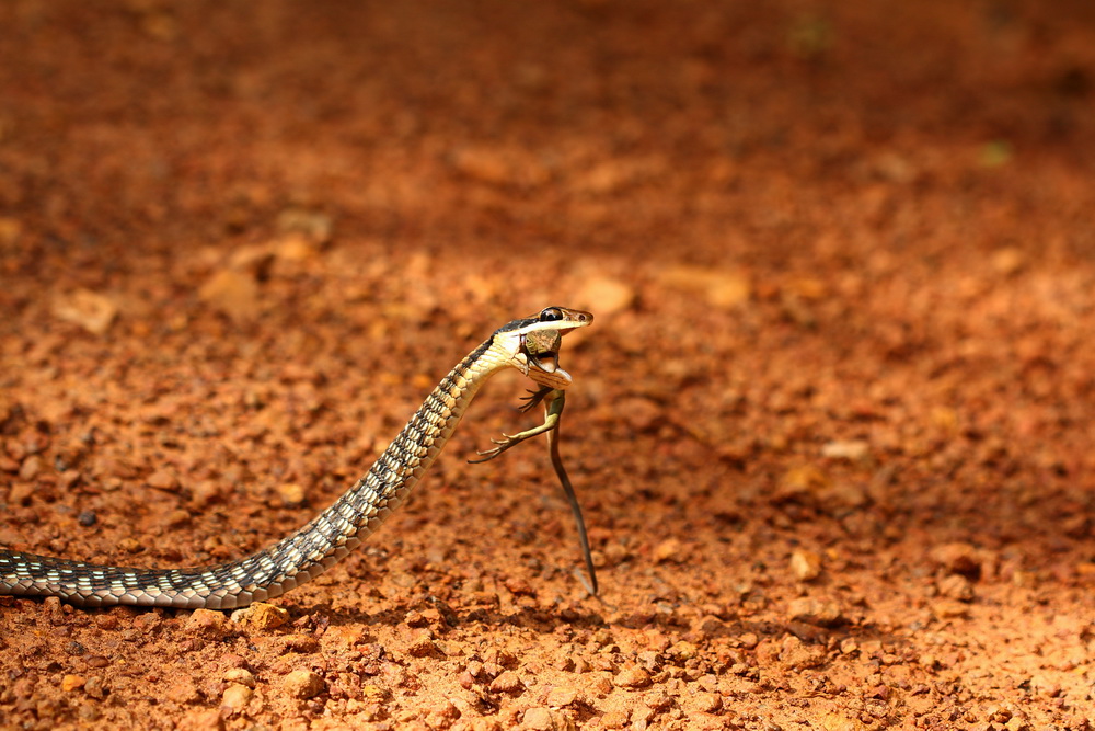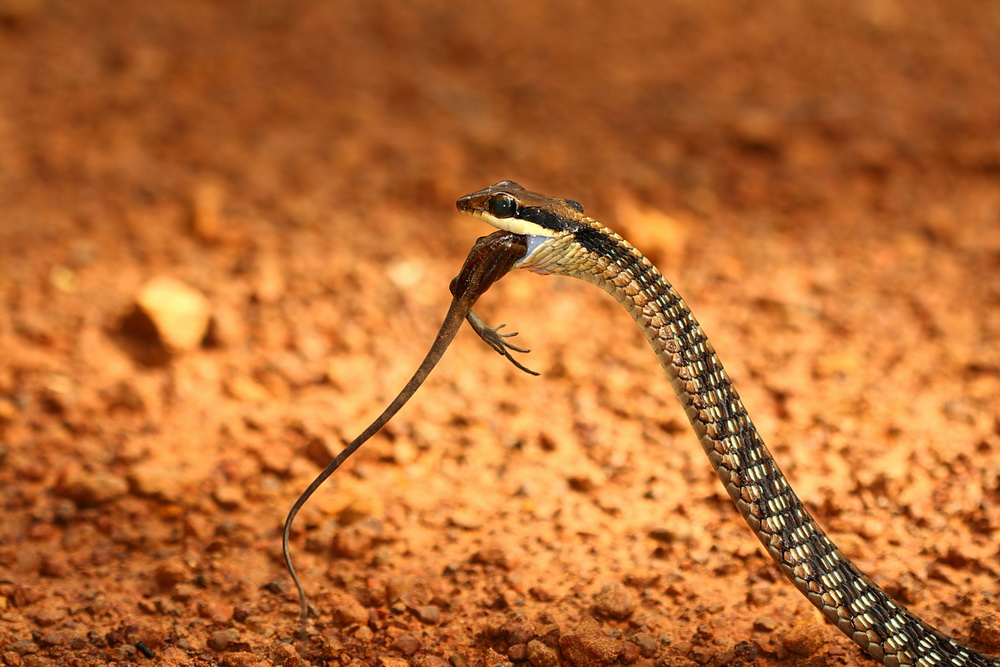 ผมเล็งจนแน่ใจว่า งูมันปากไม่ว่าง ที่จะมากัดผม จึงเดินเข้าไปใกล้อีกนิด อยากช่วยเหมือนกันครับ แต่เป็นไปตามธรรมชาติดีกว่า
