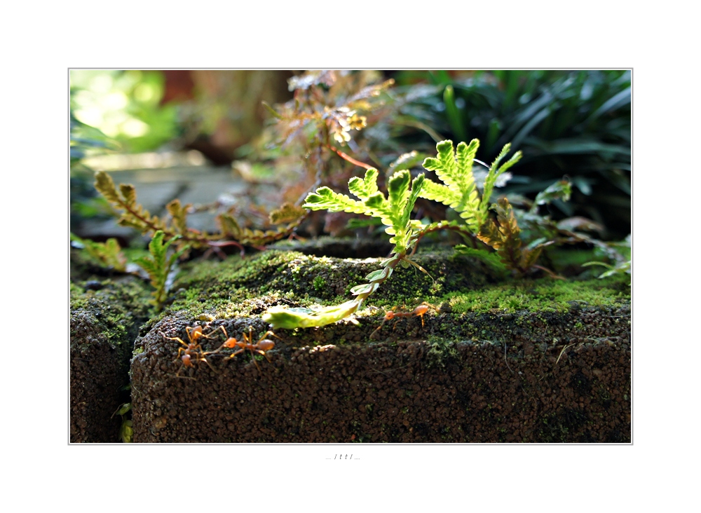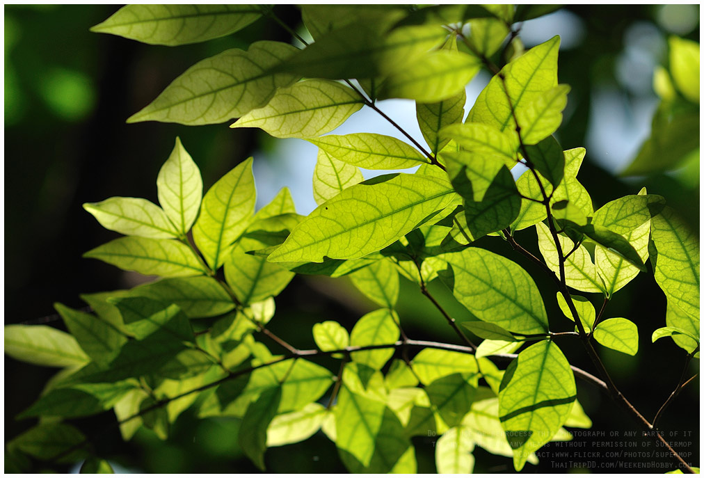 แสงตกกระทบใบ้ไม้ ด้านบน ทำให้เกิดเงารูปแบบแปลกตา กับใบไม้ด้านล่างครับ... ช่วยส่งเสริมให้ภาพน่าชมมากยิ่งขึ้นครับ