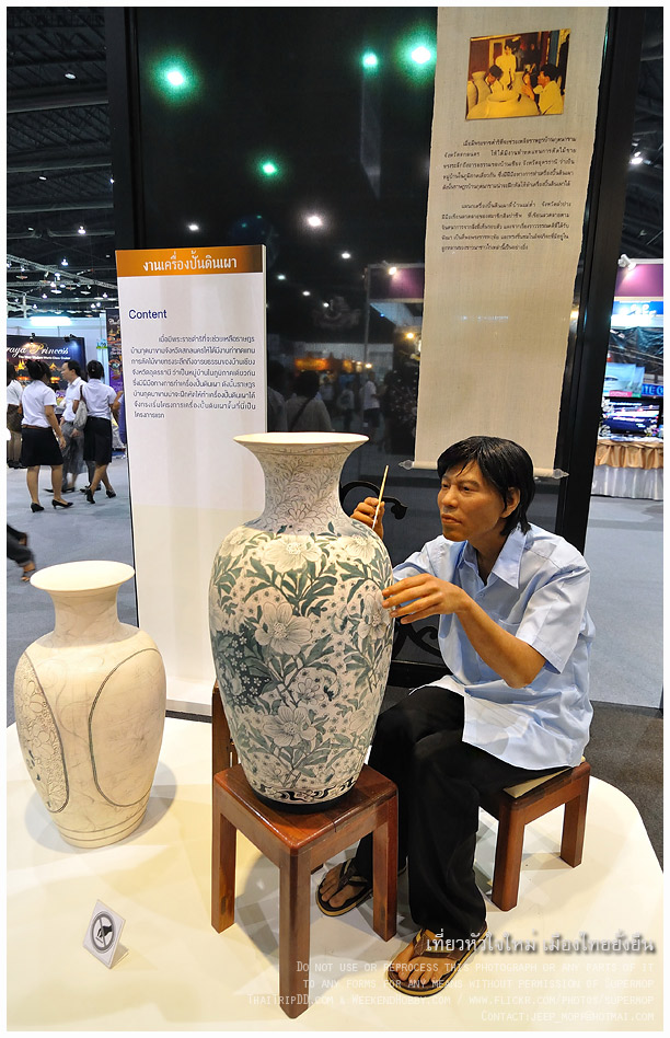 เริ่มหนักท้อง เวลาก็ล่วงเลยมาเย็นมากแล้ว ชักอยากกลับบ้านแล้วครับ เดินมาเรื่อย ๆ เจอบู๊ธของ ศิลปาชีพ เห็นคนกำลังวาดลวดลายบนแจกัน เลยเดินตรงดิ่งไปเก็บภาพ แนวงานหัตถกรรม ซักหน่อย....พอเข้าไปใกล้ ๆ ...อ่ะโด่...นี่มัน "หุ่น" นี่นา 5555...โดนซะแล้วเรา...เอิ๊ก ๆ ๆ
