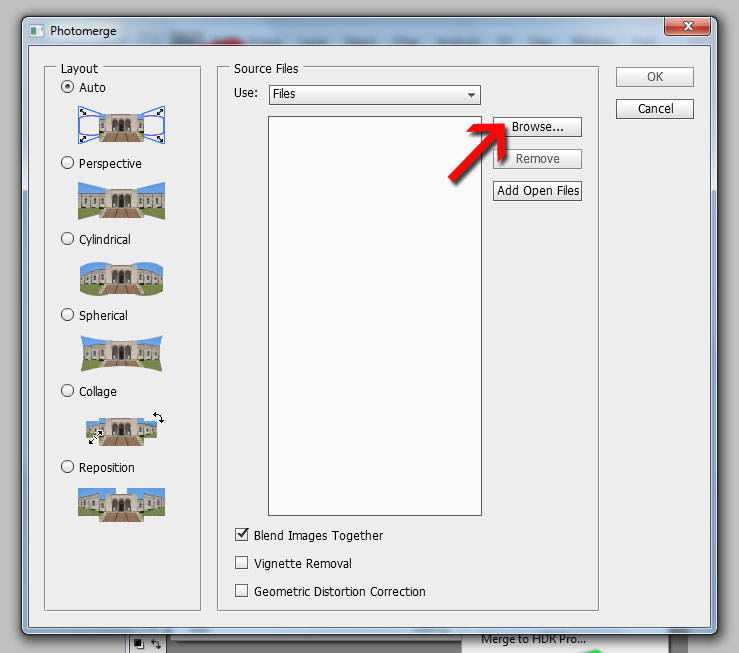 เปิด PS - File - Automate - Photomerge แล้ว Browse เลือกรูปที่มาทำ Panorama แล้วโอเคครับ