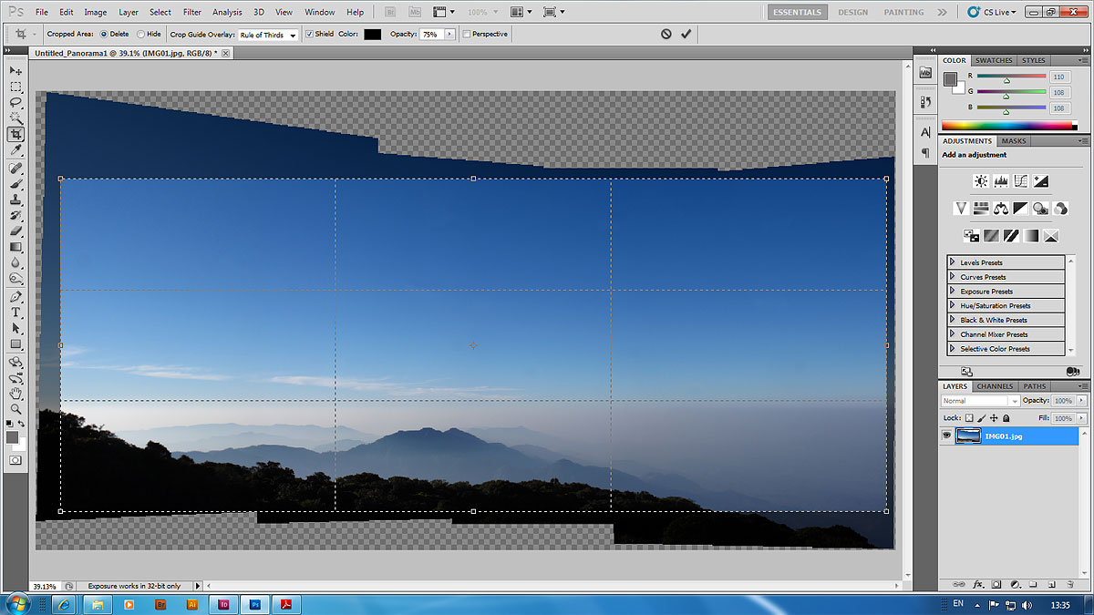 สิ่งที่ต้องการรู้คือ ' การซ้อนภาพ เพื่อทำ panorama ด้วย PS ครับ '