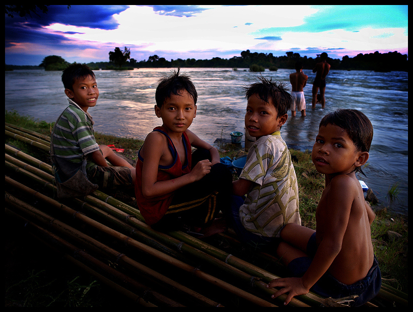 หลังเสร็จงาน ผมถือโอกาสมาเดินเล่นริมแม่น้ำโขงเพื่อนั่งมองแสงสุดท้ายของวัน แต่ที่ริมฝั่งน้ำนั้น มีเด็กชาวลาวกลุ่มหนึ่งกำลังเล่นน้ำกันอย่างสนุกสนาน และบางส่วนก็ขึ้นจากน้ำแล้ว ผมเดินเข้าไปพูดคุยทักทาย และเด็กๆกลุ่มนี้ก็สนุกกับการให้ผมถ่ายภาพ...