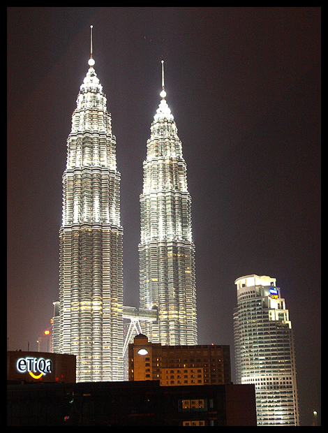 มาเลเซีย ประเทศเพื่อนบ้าน... ที่ผมมีโอกาสได้ไปทำงานแถวนั้นอยู่ 2-3 ครั้ง ไฮไลต์ของเมืองหลวงกัวลาลัมเปอร์คือตึกแฝดที่สูงที่สุดในโลก และมีเพียงครั้งเดียวที่ผมมีโอกาสไปบันทึกอาคารสูงแห่งนี้ในยามค่ำที่ประดับไฟสว่างไสว