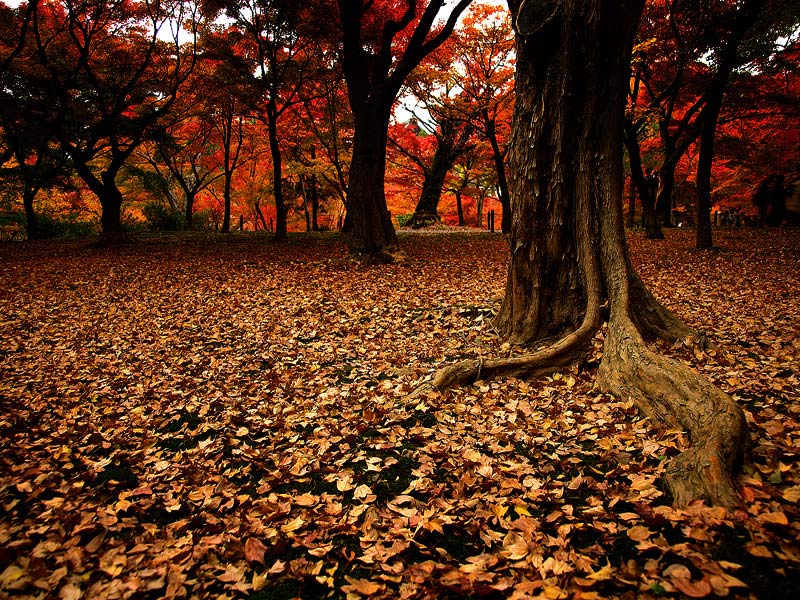 ใบไม้ร่วงหล่นที่วัดโตฟุคุจิ เมืองเกียวโต ประเทศญี่ปุ่น เป็นอีกหนึ่งห้วงเวลาที่น่าจดจำ เพราะผมไปถึงวัดนี้ตอนใกล้ค่ำ ซ้ำท้องฟ้ายังอึมครึมด้วยเมฆ สภาพแสงยากจะได้รูปดี แต่โชคยังพอมี ที่ได้ธรรมชาติงามๆยามใบไม้ร่วงและเมฆที่มีมากมายช่วยกระจายแสงให้ภาพดูฟุ้งนุ่ม