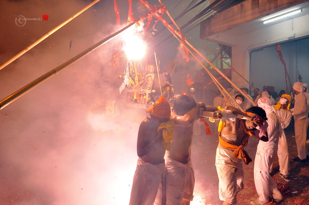 ในครั้งนั้นด้วยในช่วงระยะที่ชาวจีนกำลังประกอบพิธีเจี๊ยะฉ่าย (กินผัก) ที่ท่านผู้รู้ท่านหนึ่งซึ่งไม่ปรากฏนามเคยอาศัยอยู่ที่มณฑลกังไส (กังไส คือ เจียงซี้ของประเทศจีนในปัจจุบัน) ได้เดินทางมาประกอบอาชีพในทู ได้เห็นการประกอบพิธีเจี๊ยะฉ่ายของชาวจีนไม่ถูกต้องตามแบบฉบับของฉ้ายตึ้ง (ศาลเจ้าในมณฑลกังไส)
