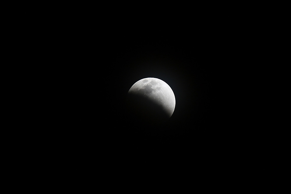 ช่วงที่เงาเริ่มบัง ใช้มือส่อง ตอนแรกกะจะใช้ขาตั้ง ไล่เสต็ปแล้วมาซ้อนกัน แต่ลมแรง ขาผมสู้ไม่ไหว เลยเลิก ...เมื่อคืนแลดูฟ้าจะฟุ้งๆ ริ้วรอยบนดวงจันทร์เลยไม่เคลียร์ครับ