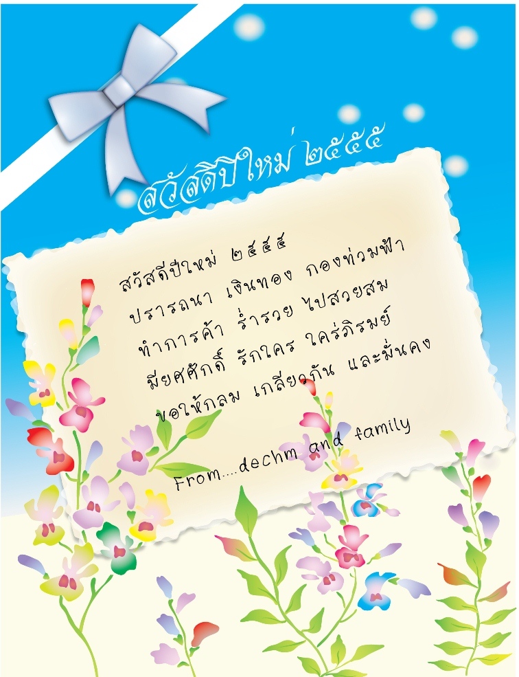 เนื่องในปีใหม่ 2555 / 2012 ที่จะถึงนี้ ผมขออวยพรให้กับเพื่อนสมาชิกทุกท่าน จงมีความสุขมาก ๆ ร่ำรวยเงินทอง สุขภาพแข็งแรง ขอให้ประสบความสำเร็จทุกอย่างที่ตั้งใจครับ