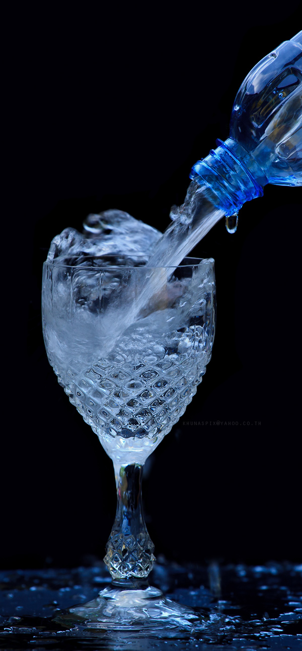 คราวหน้าเอาน้ำใส่แก้วให้เต็ม แล้วเอาลมแรง ๆ จากปั๊มลมอัดไปที่น้ำในแก้ว จะได้ภาพน้ำกระจายเป็นเม็ดกลม ๆ ออกจากปากแก้ว แล้วหาแฟลชตบจากด้านหลังหน่อย น่าจะได้ประกายจากหยดน้ำวิ๊ง ๆ ครับ.......แนะนำตามจินตนาการ มั่วล้วน ๆ 5555