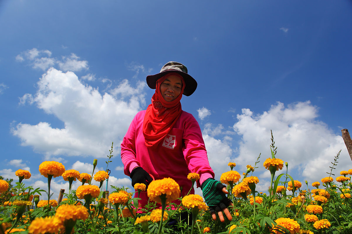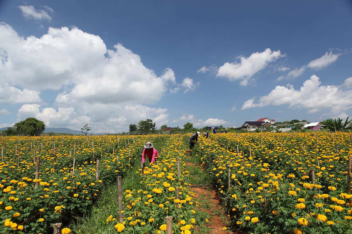 ฉากหลังดอกไม้เยอะ ๆ สวยดีจังเลยครับ ที่ไหนเนี่ย