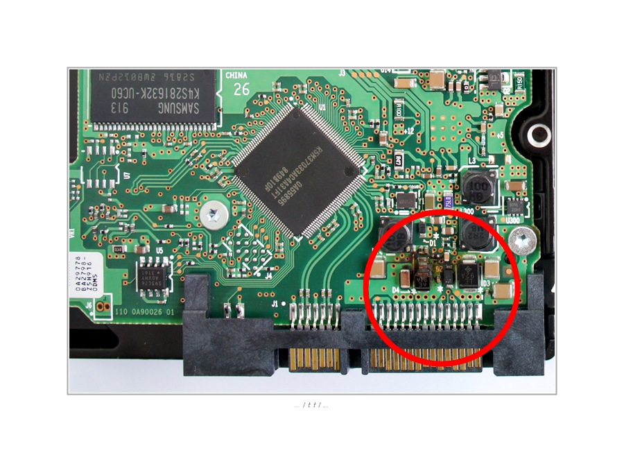 รูปด้านบน Socket สายข้อมูลแบบ ATA ของฮาร์ดดิสก์แบบเก่า ถ้าใช้ไปนานๆ อาจทำให้ตะกั่วที่บัคกรีร้าวได้ ให้บัคกรีย้ำอีกครั้งสามารถใช้งานได้ตามปกติ