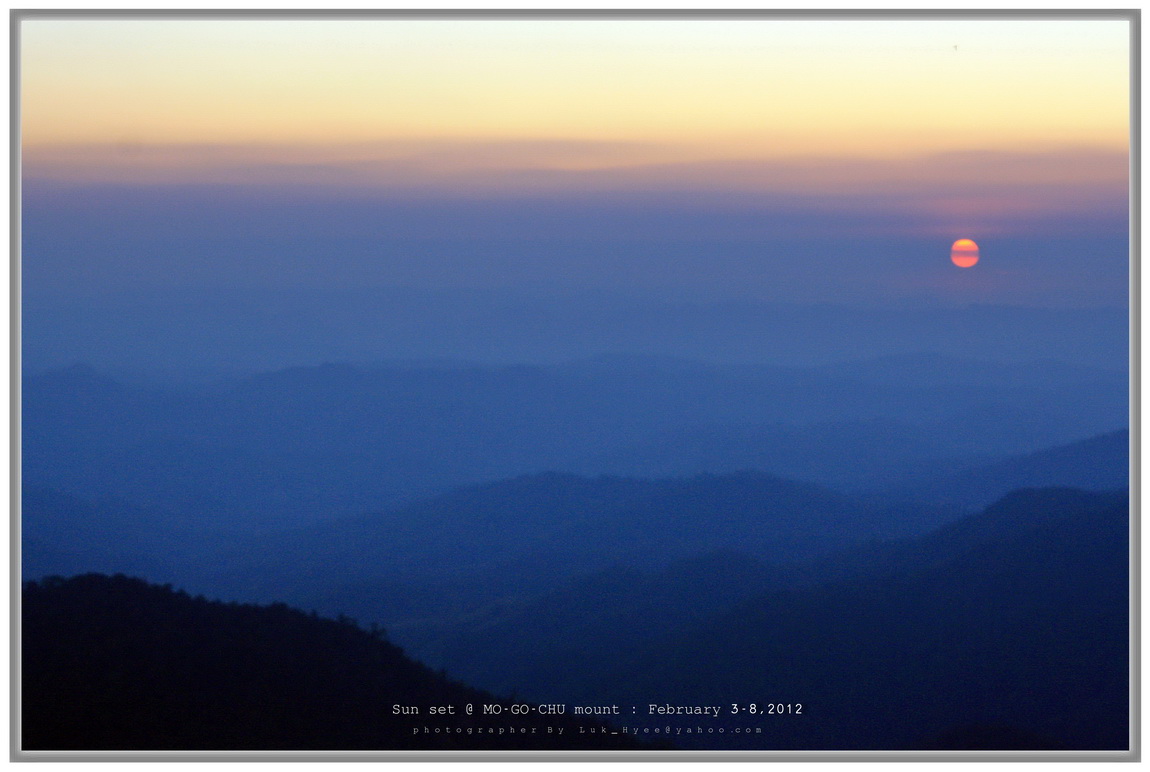 ในวันที่อยู่บนยอดโมโกจู ยังไม่ใช่วันที่สวยที่สุด เนื่องจากทะเลหมอกยังไม่เป็นเหมือนที่หวังไว้ แต่ถ้ามีคนบอกว่าวันใหนทะเลหมอกจะสวยที่สุด และชวนไปอีกรอบหนึ่ง คำตอบคือ 'ไม่หวายยยแระละ... เหนื่อยฉิ.......'
