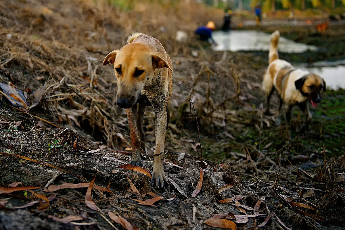บรรยากาศท้องทุ่ง น้องหมา และคนหาปลา ครับ