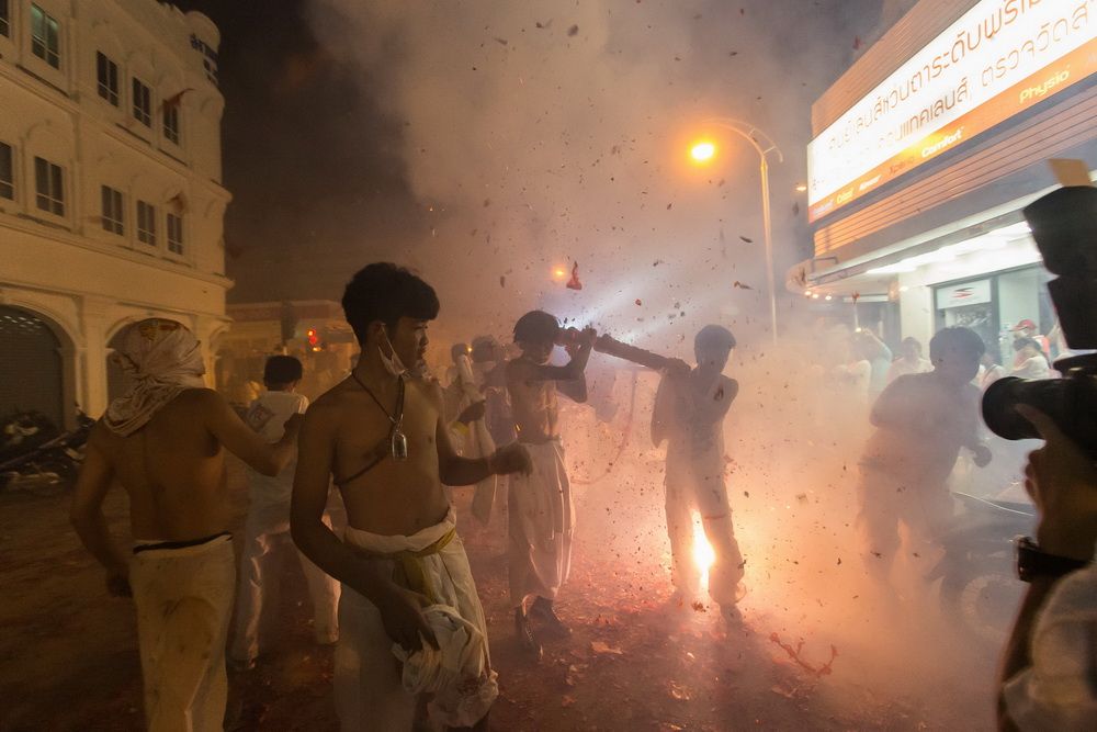 ในที่สุดก็หลบไม่พ้น มีประทัด 2-3 แผงร่วงมาลงกลางหลังผมพอดี เกิดอาการหลังขดเล็กน้อย