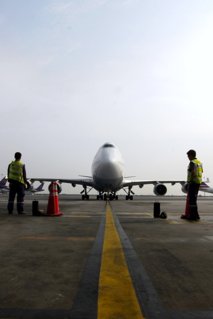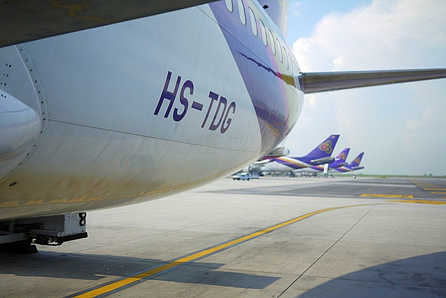 Def โฟกัสที่เส้นสีเหลืองฉากหน้าให้ชัด ทิ้งเครื่องบินให้เบลอ มันได้อีกอารมณ์