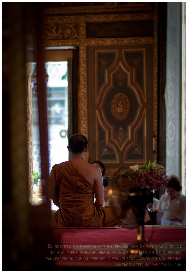 เดินผ่านด้านหลังอุโบสถ มองเข้าไปเห็นหลวงพี่กำลังทำพิธีอะไรซักอย่าง ...คว้า 85/1.8 รีบรัว เก็บภาพฟีลนี้เอาไว้ก่อนครับ
