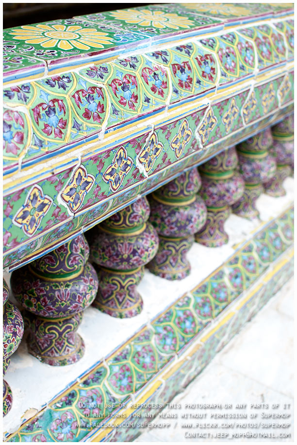 มุมนี้ถ้าเป็นวัดอื่น จะเป็นปูนปั้นลายไทยแบบทั่วไป แต่ที่นี่เป็นกระเบื้องเคลือบ ลายดอกไม้...งดงามดูแปลกตาดีครับ
