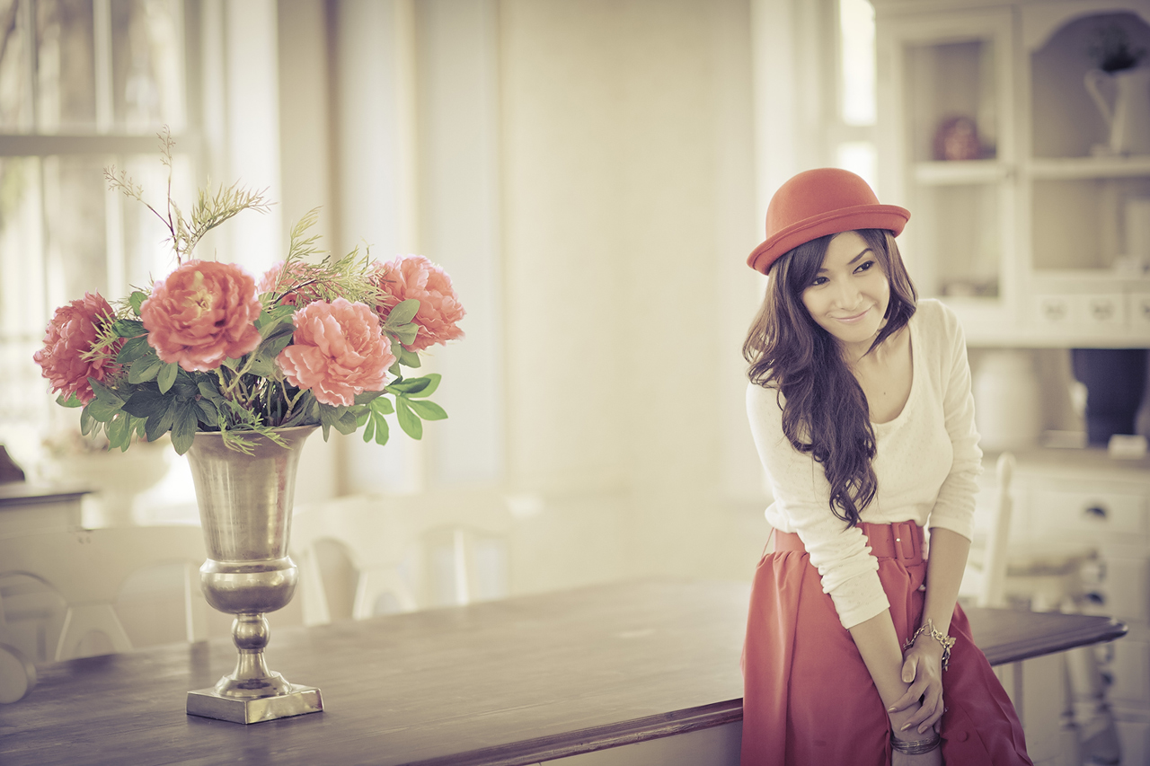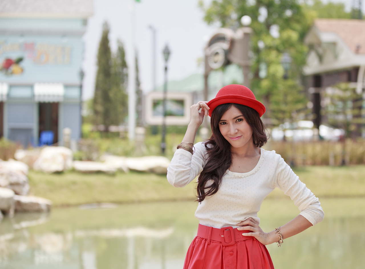 ผิวสวยอมชมพูดีครับ crop กระเป๋าที่พื้นทางด้านซ้ายออกให้หมดจะดีกว่าครับ ตัดดอกไม้ด้านซ้ายออกหน่อยได้