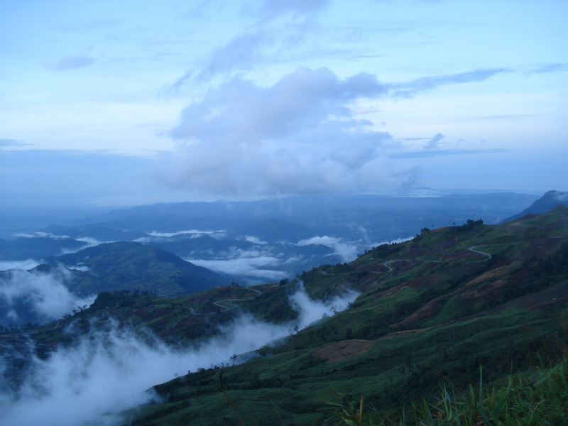 เป็นวิวสวย ๆ บรรยายกาศยามเช้า บนยอดภูทับเบิก ขับรถขึ้นตอนบ่าย ทาง อ.นครไทย ถึง อช.ภูมิหินร่องกล้า ขับเลยไปอีก 30 Km.