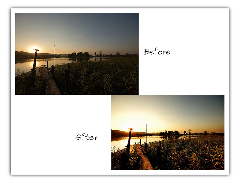 ซึ่งทุกครั้งผมจะถ่ายออกมาเป็น raw file เพราะ nikon มีโปรแกรม nikon captureNX ซึ่งสามารถเปิด raw แล้วได้สีคุณภาพที่ไม่ผิดเพี้ยน แถมยังแก้ Whitebalance ได้ดีอีกด้วย วิธี Process ของผมผมก็ใช้ NX เปิดไฟล์แล้วก็แก้ blackbalance ตามความเหมาะสมของภาพนั้นๆ และก็ปรับ level curve นิดหน่อยแบบขยับไปเรื่อยๆ ใช้ u-point เปิดส่วนมืดนิดหน่อย เสร็จแล้วก็ save เป็น jpg ครับ แล้วมาต่อที่ Photoshop ปรับแสง สี ไปเรื่อยๆ แล้วก็จัดการกับ noise และก็ sharp เป็นอันเสร็จพิธีครับ แต่ถ้าภาพไหนเน้นหน่อยอาจมีการใช้ selection เพื่อเลือกปรับฟ้าให้จี๋ดบ้าง แค่นี้แหละครับที่ผมทำเป็นประจำกับทุกภาพ แต่บางคนอาจขี้เกียจปรับแต่ผมชอบครับเพลินดี นู่นนิด นี่หน่อยตามอารมณ์
