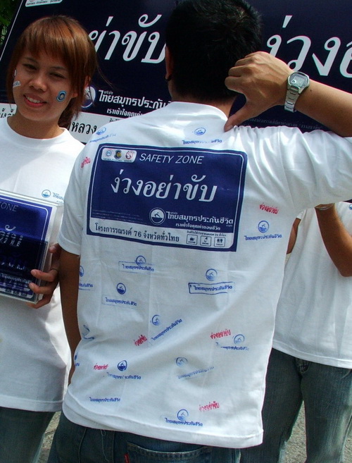 โครงการรณรงค์ ง่วงอย่าขับ 76 จังหวัดทั่วไทย ได้ออกรณรงค์แจกสติ๊กเกอร์สำหรับติดรถยนต์ และเสื้อยืด ง่วงอย่าขับ แก่กลุ่มเป้าหมาย บริเวณ CENTRAL WORLD และ บริเวณพื้นที่ อาร์ซีเอ (RCA หรือ Royal City Avenue) ในวันอาทิตย์ที่ 29 มิถุนายน 2551 มีการแข่งขันฟุตบอลชิงแชมป์แห่งชาติยุโรป 2008 บอลยูโร(UEFA Euro 2008) วันนี้เป็นวันรอบชิงชนะเลิศ