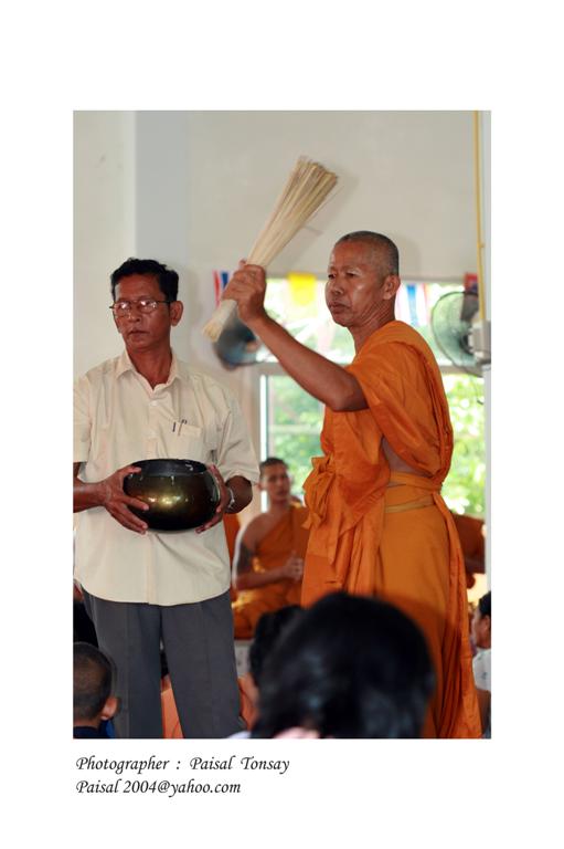 คำตอบที่ 6 ท่านเจ้าอาวาสกำลังพรมน้ำมนต์ให้กับญาติโยมที่มาร่วมบุญในงานกฐินครั้งนี้