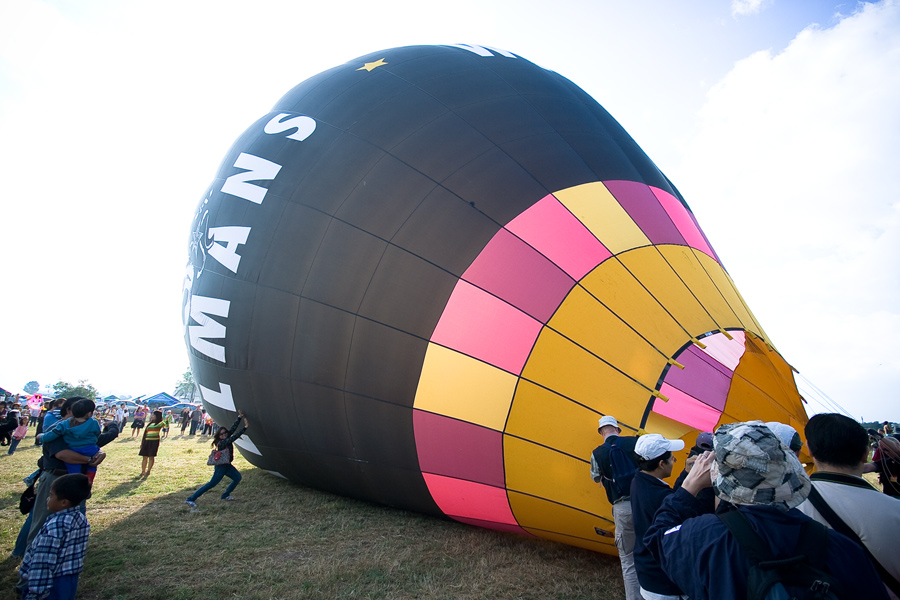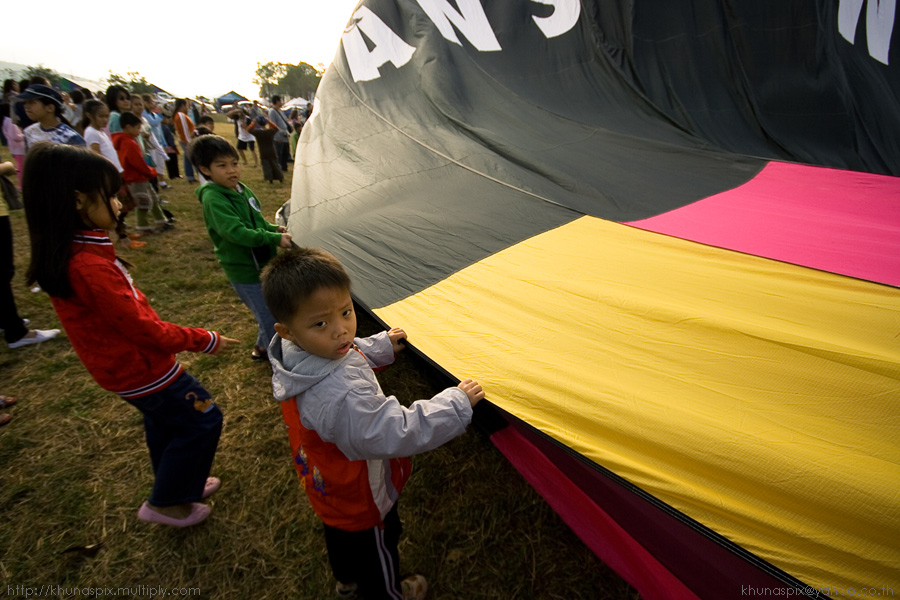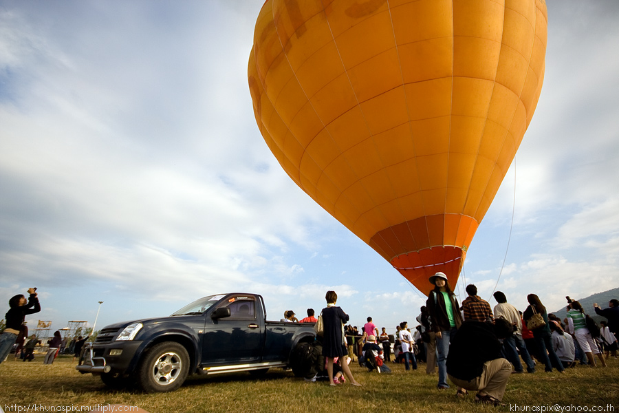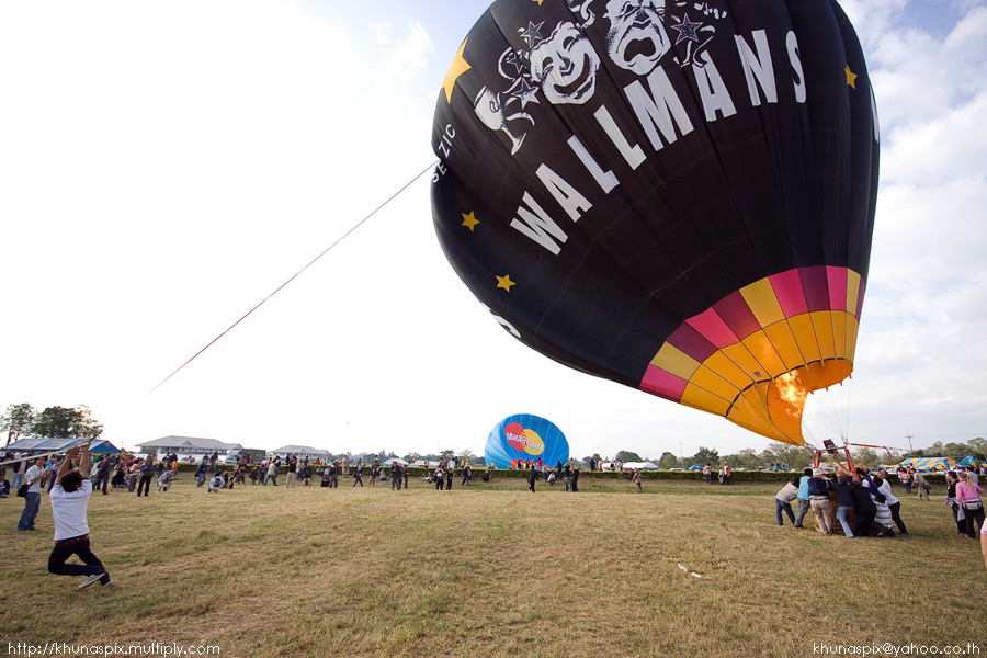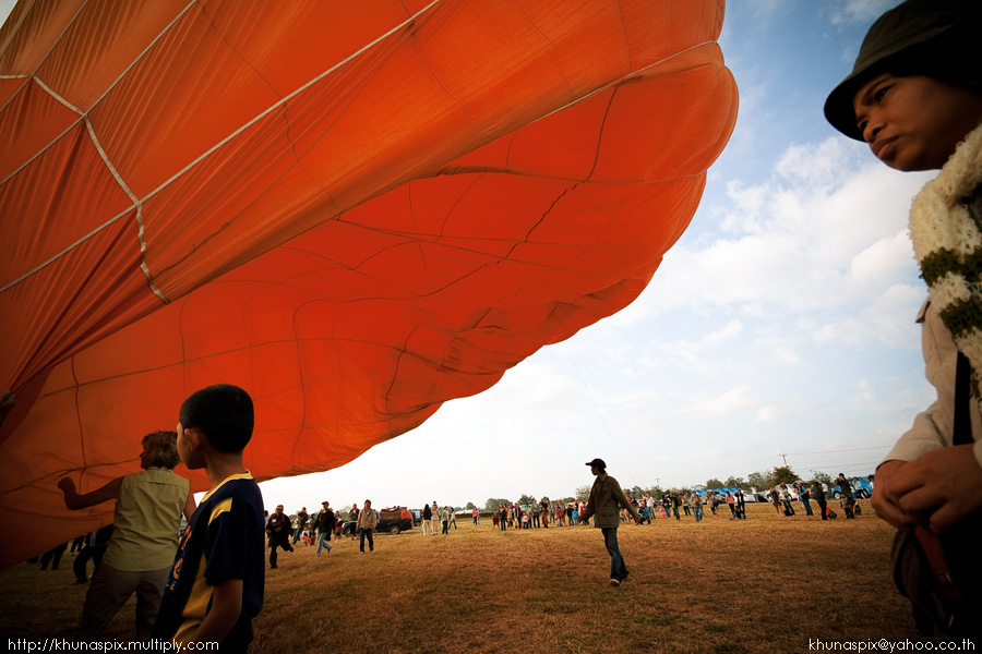 คำตอบที่ 10 แล้วเจ้าบอลลูนก็จะค่อยๆ ป่องขึ้นๆ จนกระทั่งเปล่งเต็มที่นั่นแหละ....ขั้นตอนทั้งหมดต้องใช้ผู้ช่วยเยอะทีเดียวแหละ....ยิ่งวันนั้นลมแรงๆ นี่นับสิบคนทีเดียว....
