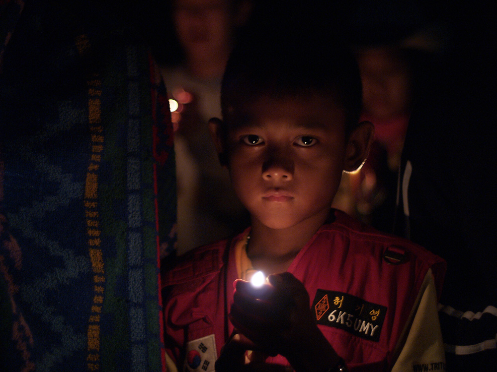 มาดูรูปกันครับ คืนแรกที่ไปถึง วันพ่อแห่งชาติ ได้ทำกิจกรรม จุดเทียนชัยถวายพระพร ร่วมกับเด็ก ๆ ที่โรงเรียน