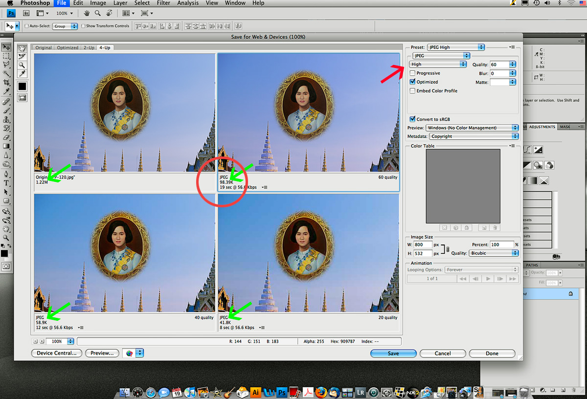 Original, Optimized, 2-Up, 4-Up ให้ท่านคลิ๊กไปที่ 4-Up มันก็ขึ้นภาพที่เราจะเซฟ