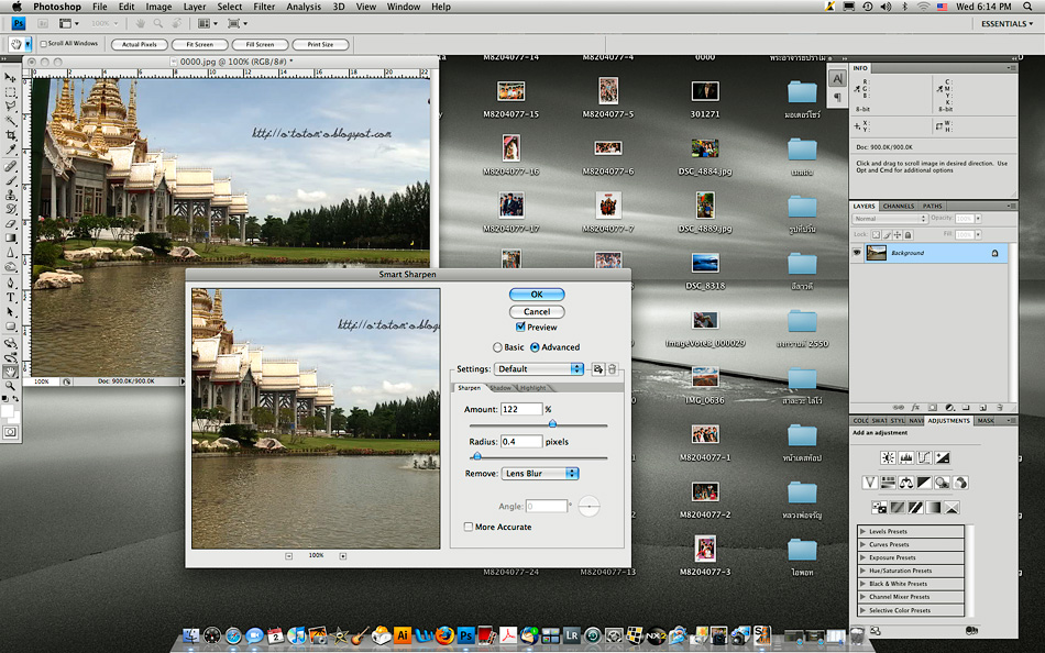 คำตอบที่ 21 ผมแค่ปรับ Level ให้ภาพสว่างใสขึ้นมา แล้วก็ไป Sharpen เพื่อคืนความคมชัดให้ภาพครับ