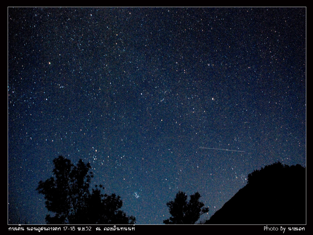สวัสดีครับทุกท่าน.... พอดีกลับมาก็ติดงานครับ งานเข้าเยอะครับ แล้วก็วันศุกร์เสาร์อาทิตย์ ไปแอ่วทุ่งบัวตองซะงั้น เลยดองฝนดาวตกไปก่อน ขอโทษทีนะครับที่ปล่อยให้รอเก้อนานครับ จริงๆก็ท้องฟ้าเปิดครับ ถ่ายได้ชัดใสดีครับ แต่สถานที่ไม่อำนวยครับ คือบนยอดดอยสูงสุดขึ้นได้ตอนตี5 ครับ ที่กางเต้นท์ ก็มีแสงไฟรบกวนจากแปลงดอกไม้ ซึ่งชาวเขาจะเปิดไฟให้ดอกไม้ตลอดทั้งคืนครับ ก็เลยไม่ได้ถ่ายตรงนั้น รอตี5ขึ้นไปถ่ายตรงจุดชมวิวครับ ก็ได้มานิดเดียวเองครับ อิอิ แต่ได้เป็นภาพอย่างอื่นมากกว่าครับ ขอบคุณครับ ที่ติชม