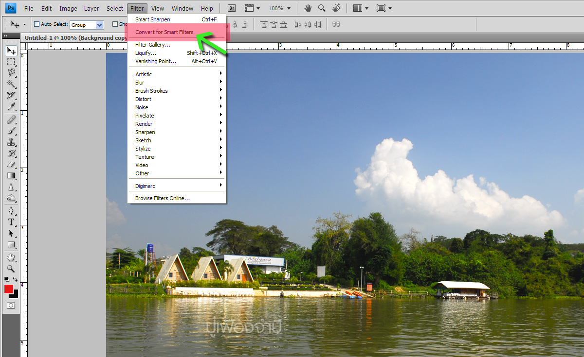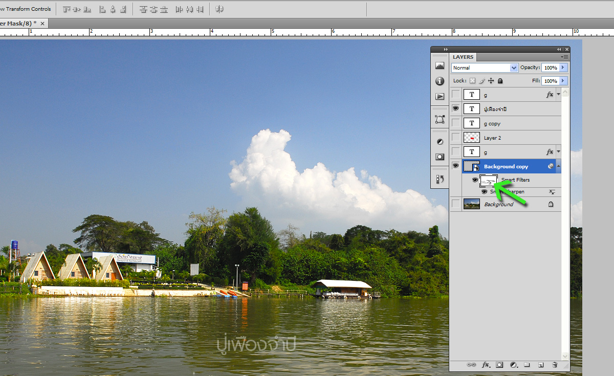 การใช้ Filter Sharpen ก่อนที่จะเซฟลงเวบบอร์ดเพื่อคืนความคมให้กับภาพเราเมื่อเราย่อลงมา ....