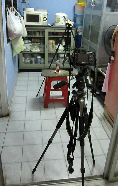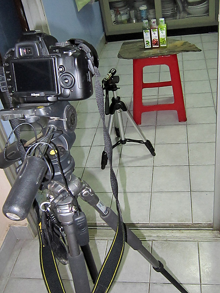 อุปกรณ์แบบบ้าน ๆ มีจำกัดเท่านี้เองครับ หมดบ้านแล้ว...นี่ยังแอบเอาถุงร้อนก๊วยเตี๋ยวใหม่ ๆ มาทำให้แสงจากไฟฉาย Soft เลยน๊ะเนี่ย......แบบว่า Studio อาชีพอึ้งละกันอ่ะ