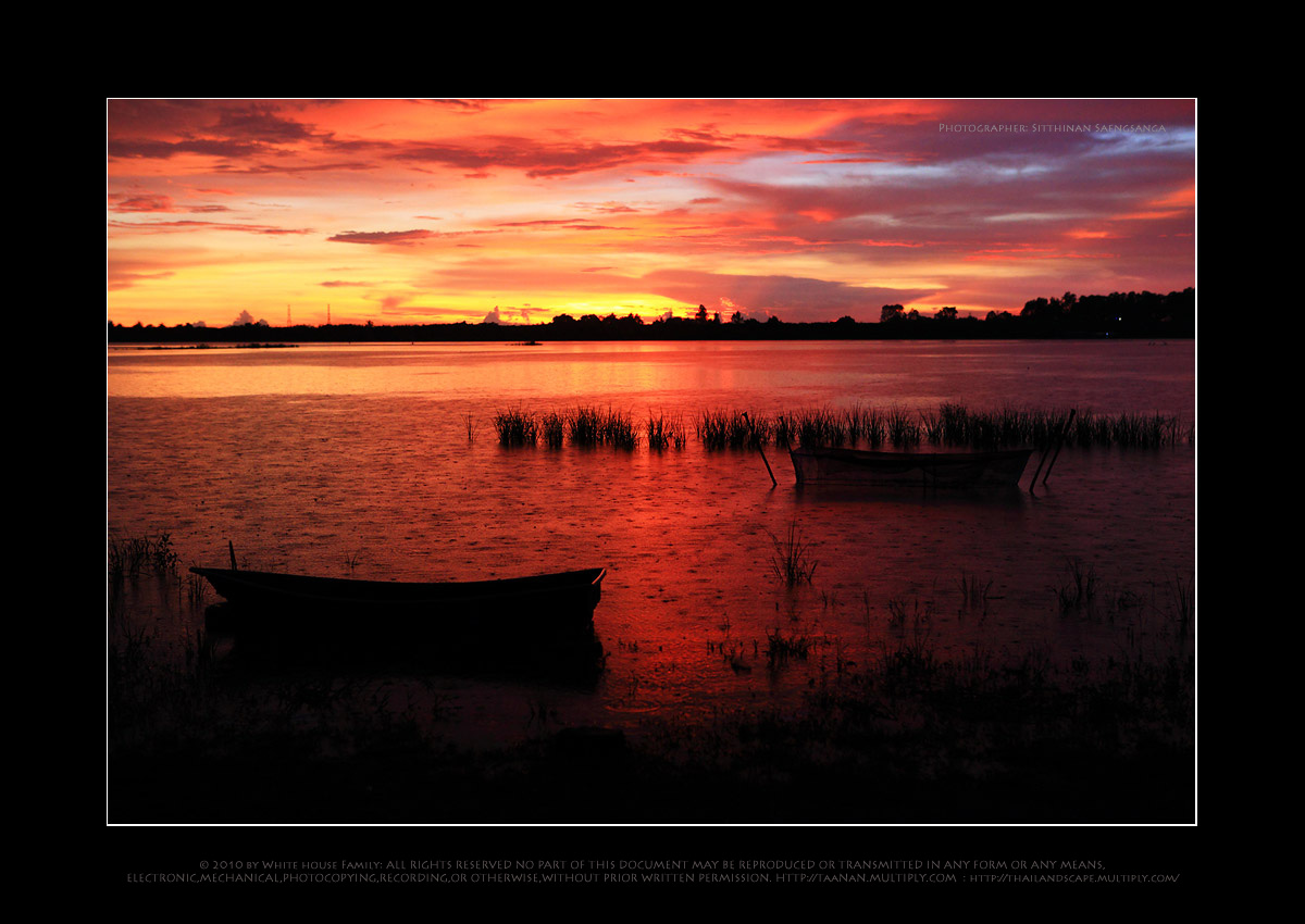หวัดดีครับครับพี่นัน ผมว่านะภาพแบบนี้มันจะเป็นเอกลักษณ์ของพี่ไปแล้วละ แต่ถ้าในส่วนของผู้เสพอย่างผมภาพนี้มันขัดใจตรงที่ฉากหน้าหรือ เรือ ต้นหญ้าที่อยู่ในน้ำมันน่าจะมีรายละเอียดให้เห็นใด้มากกว่านี้หน่อยหรืออาจจะรักพี่เสียดายน้อง ถ้าเอาเรือจะไม่ใด้แสงสีทองของฟ้า มันก็เลยเป็นภาพนี้อย่างที่เห็นแต่ก็ไม่แน่ใจว่าพี่นันลองตบแฟลทเบาๆไปที่เรือหรือยังคือผมมองว่าถ้าใด้เนื้อหาหรือรายละเอียดของฉากหน้าด้วยมันคงจะใด้เรื่องของสีสรร ของใบใม้และเนื้อใม้เก่าๆของเรือ หรืออื่นเข้ามาประกอบทำให้ภาพมีเรื่องราวหลากหลายมากขึ้น เพราะที่เห็นมันมีแค่สองสีคือสีดำของฉากหน้าและสีทองของท้องฟ้า