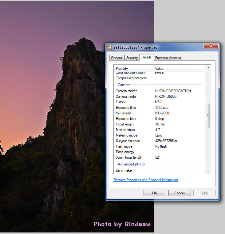 ภาพเปิด...เห็นข้อมูลแล้ว คงไม่ได้ใช้ขาตั้งหรือไง iso ถึงไปที่ 2000 ...ความเร็ว 1/25 เก่งนะถือกล้องได้นิ่ง