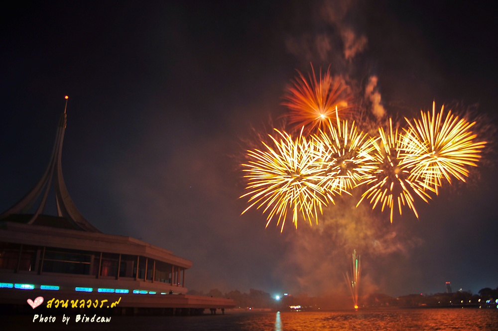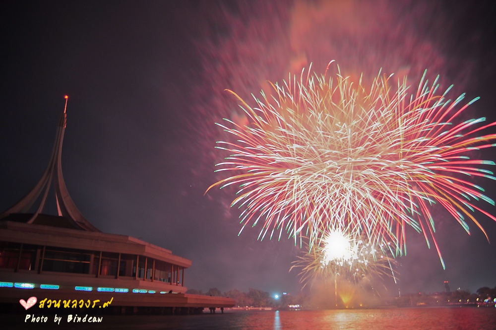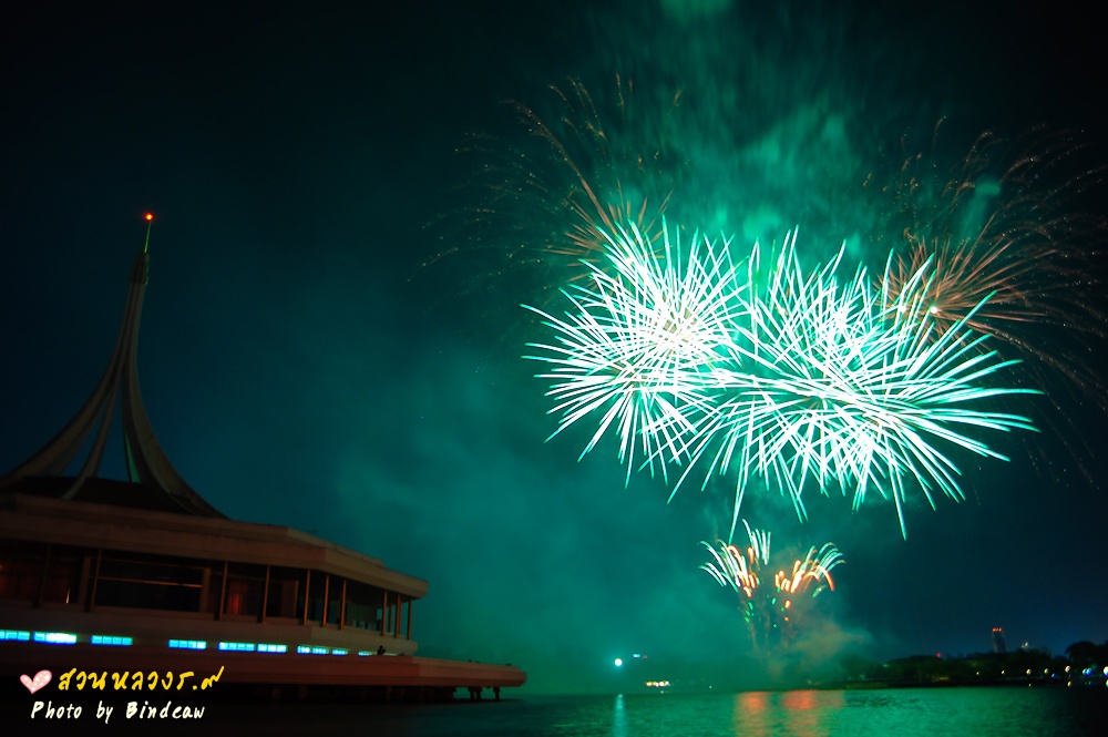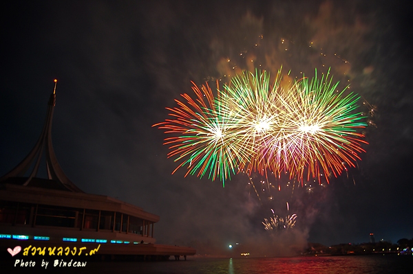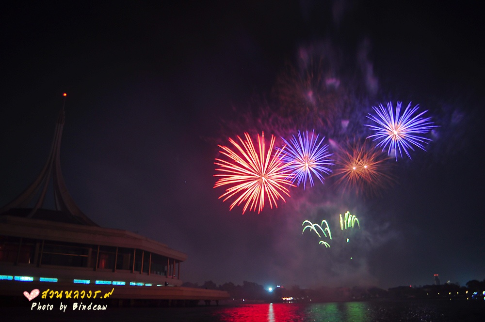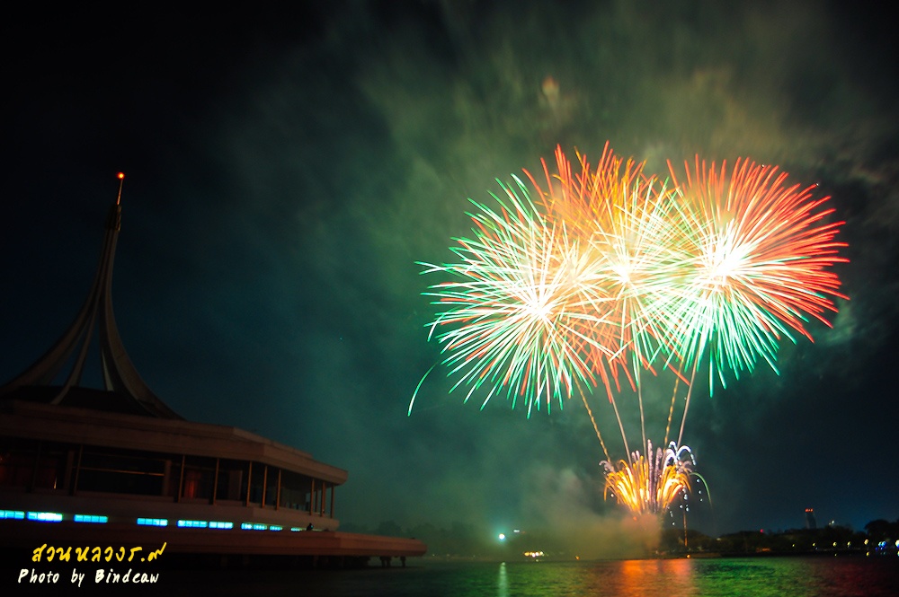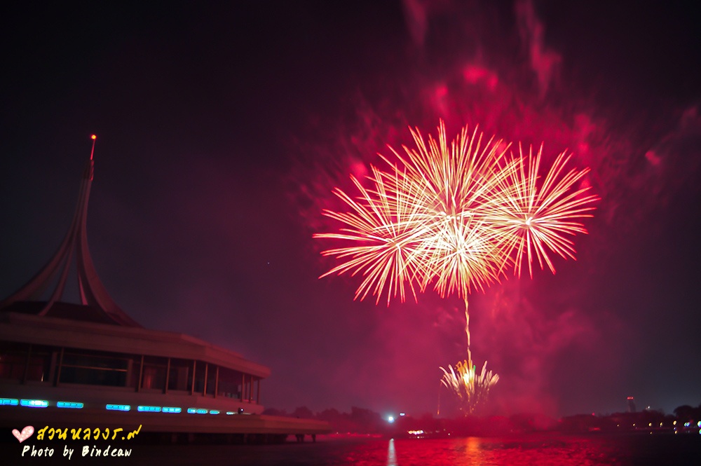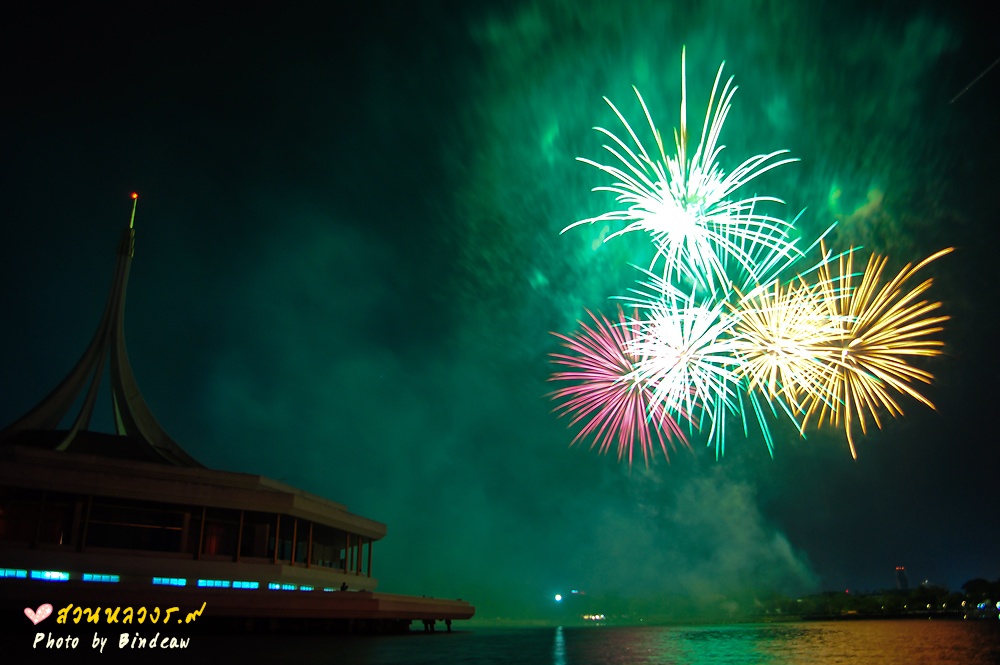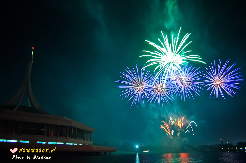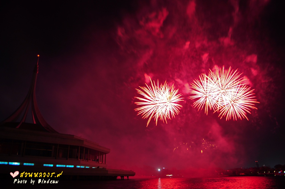 3.โฟกัสแบบ อินฟินิตี้ (ผมก็ยังไม่ค่อยเข้าใจกับการตั้งแบบอินฟินิตี้ครับ บางคนบอกว่าให้ใช้ไฟฉายส่องไปตามยอดไม้ หรืออะไรสักอย่าง เอาไกล ๆ หน่อย แล้วออโต้โฟกัสไปก่อน พอกล้องโฟกัสได้แล้ว ก็ค่อยเลื่อนปุ่มตรงเลนส์กล้องเป็น MF เท่านี้ก็เป็นอินฟินิตี้โฟกัสแล้ว , บางคนก็บอกว่า ไม่ใช่แบบนี้ การปรับแบบอินฟินิตี้ คือ เลื่อนปุ่มตรงเลนส์กล้องเป็น MF เลย แล้วใช้มือหมุนโฟกัสไปจนสุด เสร็จแล้วให้หมุนถอยกลับมาอีกนิดนึง ก็จะเป็นโฟกัสอินฟินิตี้แล้ว.) ส่วนผมใช้แบบที่สองครับ เพราะว่ามืดครับ กล้องไม่ยอมออโต้โฟกัส เลยใช้แบบที่สองครับ ไม่ทราบว่าถูกต้องหรือเปล่าครับ ดูจากภาพพลุแต่ละลูก ก็ดูเหมือนจะหลุด ๆ โฟกัสเหมือนกันนะครับ