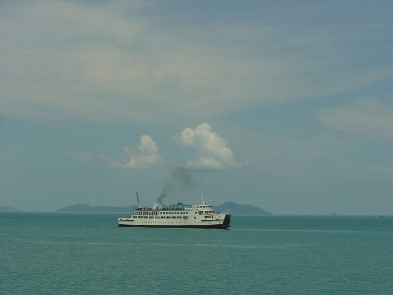 ไปถึงท่าเรือเฟอร์รี่ตอนบ่ายโมง แต่ต้องนั่งรอคิว โชคดีที่รถไม่มากนัก ใช้เวลารอเพียงชั่วโทงเดียวก็ได้ไป